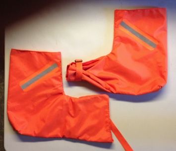 | Orange Safety Poggies bicycle handlebar mittens mitts bar road mountain path singletrack single track bikepacking packing packer |