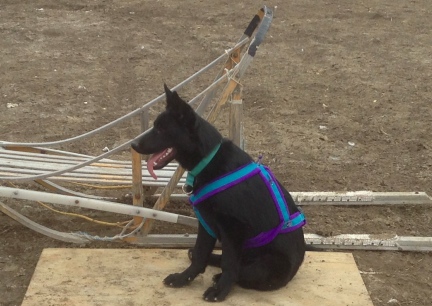 | black german shepherd dog harness harnessed sled dog snow |